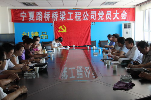 2012年6月30日橋梁工程公司召開黨員大會,大會對2011年度優(yōu)秀共產(chǎn)黨員進行表彰,并就黨員轉(zhuǎn)正、轉(zhuǎn)為預備黨員、發(fā)展入黨積極分子等事宜進行討論、研究、決定,并組織全體黨員學習“寧夏回族自治區(qū)第十一次黨代會報告”。