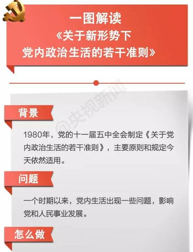 10月召開的十八屆六中全會(huì)上,最重要的成果之一,就是兩個(gè)文件即《關(guān)于新形勢(shì)下黨內(nèi)政治生活的若干準(zhǔn)則》和《中國共產(chǎn)黨黨內(nèi)監(jiān)督條例》的正式出臺(tái)。這兩個(gè)黨內(nèi)文件在全面從嚴(yán)治黨中具有里程碑意義。