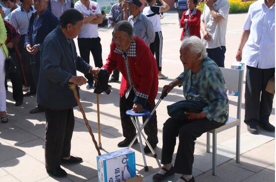 擺經(jīng)理向老同志發(fā)放慰問(wèn)品