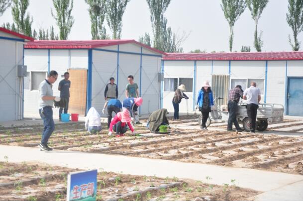 當(dāng)天上午葉盛黃河橋80、90后成員積極投身勞動中,對菜地進(jìn)行整平、打梁、壓膜,現(xiàn)場勞動氛圍異常熱鬧,幾位沒有干過農(nóng)活的小伙子們,也忙得不亦樂乎。下午3時(shí),公司機(jī)關(guān)人員與項(xiàng)目人員頭頂烈日、齊心協(xié)作種下百余顆番茄、黃瓜、辣椒、 茄子等植物。一整天辛苦而又快樂的勞動中,大家沒有怨言,相互配合,所有的菜地都整平完畢,種滿秧苗,大家臉上都露出了快樂、幸福的微笑。
