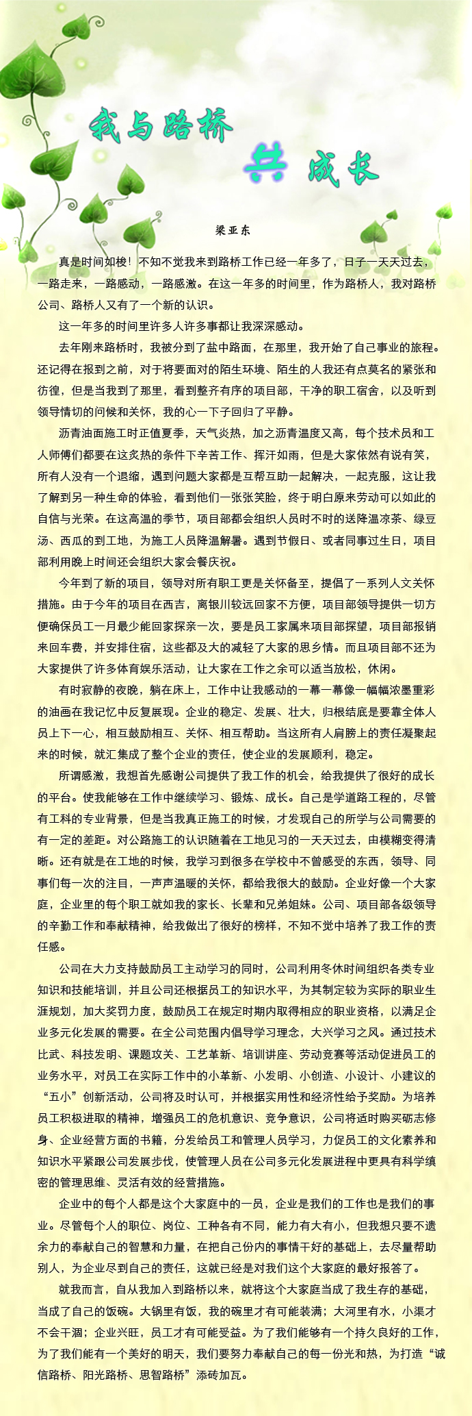 我與路橋共成長(zhǎng)