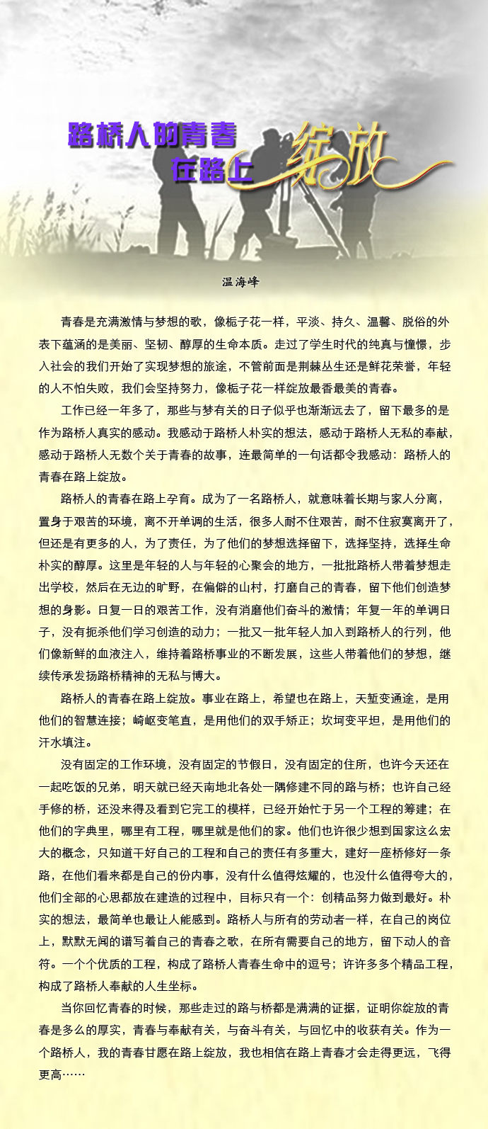 路橋人的青春在路上綻放