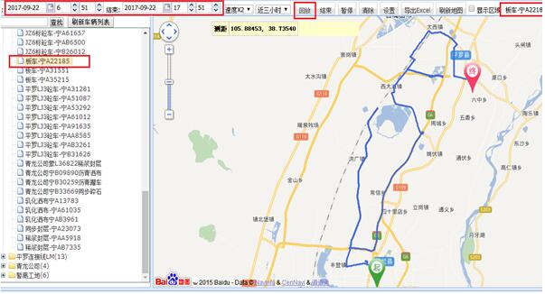 (二)用戶可以查詢所選車輛或工程機械在任意時間段內的行駛路線、移動軌跡,并從地圖中可以清晰的查看到是否在本項目規(guī)定的施工區(qū)域內工作。