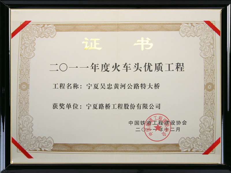 2011年度吳忠黃河大橋優(yōu)質(zhì)工程獎(jiǎng)