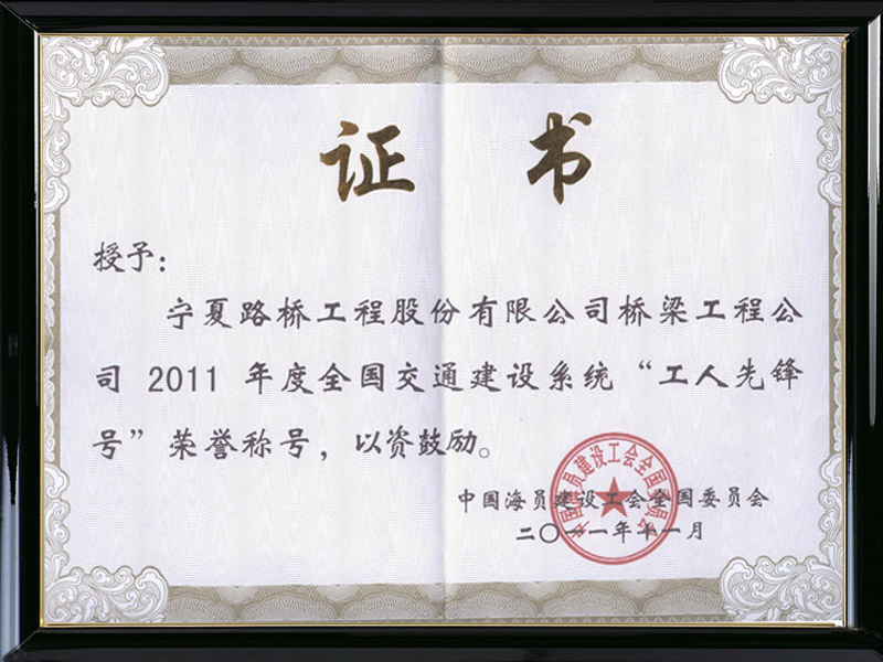 2011年度吳忠黃河大橋優(yōu)質(zhì)工程獎