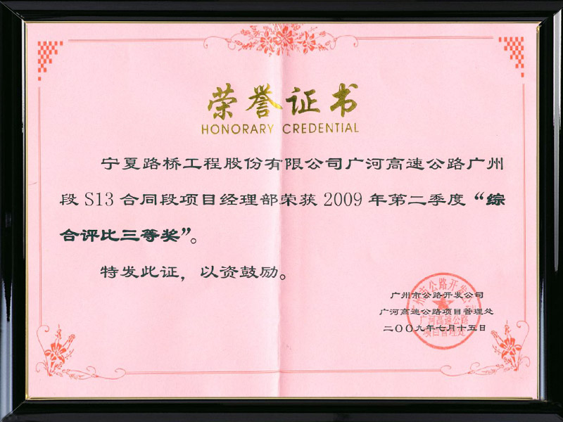 滾紅高速質(zhì)量進度獎
