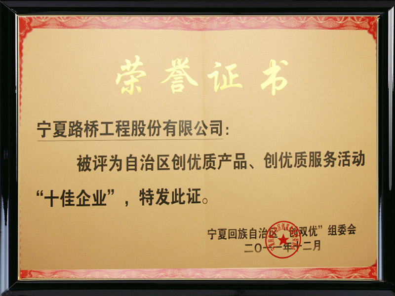 2011年“創(chuàng)雙”優(yōu)十佳企業(yè)