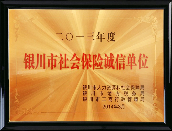 2013年度銀川市社會保險(xiǎn)誠信單位