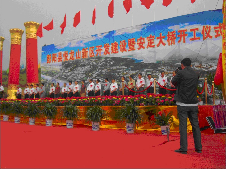 7月20日的的彭陽(yáng)縣城,陽(yáng)光明媚,花團(tuán)錦簇, 在一派和諧而又熱烈的氣氛中,彭陽(yáng)縣悅龍山新區(qū)開(kāi)發(fā)建設(shè)暨安定大橋開(kāi)工儀式隆重舉行, 這是彭陽(yáng)縣發(fā)展歷程中的一件大喜事。