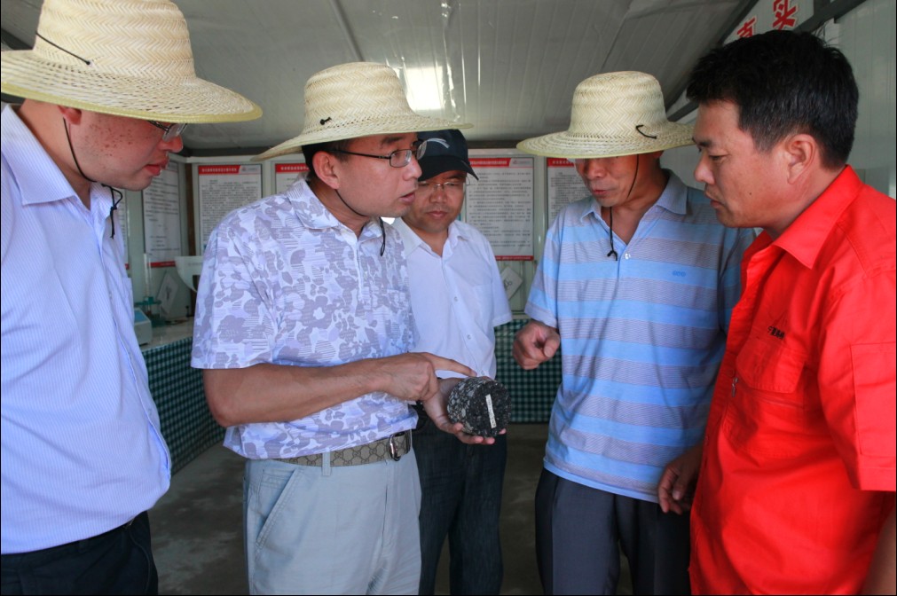 公司領(lǐng)導(dǎo)檢查面層芯樣質(zhì)量