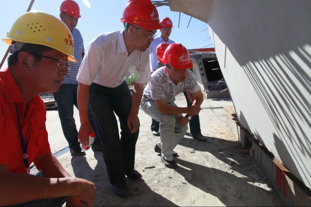 公司領(lǐng)導(dǎo)檢查鹽池至紅井公路第一合同段箱梁預(yù)制質(zhì)量