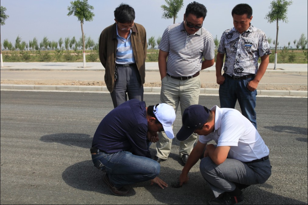 公司領(lǐng)導(dǎo)檢查中黑路面層施工質(zhì)量