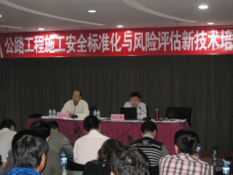 交通運(yùn)輸部工程質(zhì)量監(jiān)督局工程安全處桂志敬處長就全國公路建設(shè)領(lǐng)域安全生產(chǎn)形勢、公路建設(shè)施工安全標(biāo)準(zhǔn)化建設(shè)與實(shí)施、公路施工工程平安工地達(dá)標(biāo)考核評價(jià)管理思路及典型安全生產(chǎn)事故案例分析講解。交通運(yùn)輸部科學(xué)研究院肖殿良副研究員、博士對交通運(yùn)輸部制訂下發(fā)的《公路橋梁和隧道工程安全風(fēng)險(xiǎn)評估指南》、《公路橋梁和隧道工程安全風(fēng)險(xiǎn)評估制度》的制訂背景、總則和術(shù)語、總體風(fēng)險(xiǎn)評估、專項(xiàng)風(fēng)險(xiǎn)評估、重大風(fēng)險(xiǎn)源風(fēng)險(xiǎn)估測和風(fēng)險(xiǎn)控制講解和重點(diǎn)內(nèi)容條文的分析、解讀、關(guān)鍵點(diǎn)、難點(diǎn)問題分析、橋梁隧道風(fēng)險(xiǎn)評估典型案例介紹等內(nèi)容宣講。