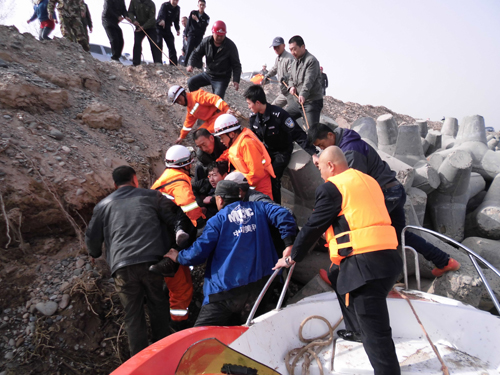 原來,3月15日10時許,在黃河大橋施工現(xiàn)場,該項目部員工突然聽到上游500米處傳來呼救聲和警笛聲,仔細一看,河里有一人正漂流而下。好在路橋公司員工平時接受過河水中救人的訓(xùn)練,工區(qū)隊長王德軍立即組織施救:他們?nèi)韮蓚救生圈和一根5米多長的鋼筋,準備趁落水者經(jīng)過便橋時將救生圈遞給他。由于在冰冷的河水中浸泡時間過長,落水者已凍僵,經(jīng)過便橋時沒抓住救生圈。見此情景,項目書記景文學(xué)等4人立即發(fā)動快艇去追,好在該處水流平緩,他們很快就將落水青年救起?焱У竭_岸邊時,早已等候在此的消防、警察合力將落水者送上了救護車。