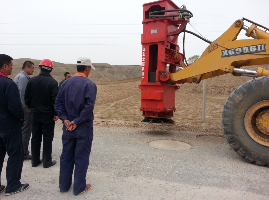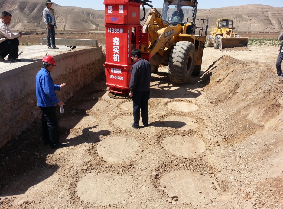 為了更好的解決上述施工缺陷,近期公司在區(qū)內(nèi)首次引進(jìn)液壓夯實(shí)機(jī),并在施工的同心至預(yù)旺二級(jí)公路一期工程上進(jìn)行了前期施工試驗(yàn)工作。經(jīng)過(guò)對(duì)5道蓋板涵臺(tái)背和450m長(zhǎng)的舊路加寬段的補(bǔ)強(qiáng)試驗(yàn),并結(jié)合對(duì)填料類(lèi)型、壓實(shí)層厚度、擊實(shí)次數(shù)、沉降量和壓實(shí)度的數(shù)據(jù)分析,初步認(rèn)為該機(jī)械使用方便快捷,能有效降低橋涵臺(tái)背、改擴(kuò)建道路新舊路結(jié)合部位的不均勻沉降問(wèn)題,有效提高道路的運(yùn)營(yíng)質(zhì)量。