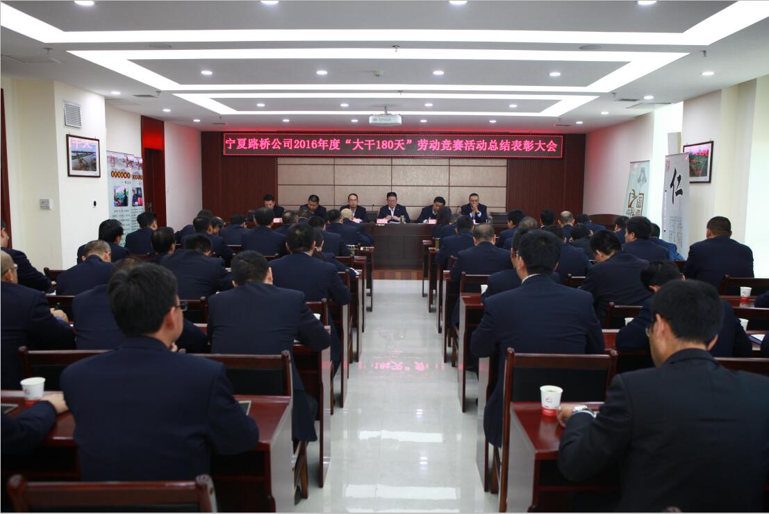 11月14日,寧夏路橋公司召開2016年度“大干180”勞動競賽活動總結表彰大會。公司黨委書記、副董事長柳建新、副董事長、總經(jīng)理趙建軍、黨委副書記等公司高層領導及各分(子)公司經(jīng)理、書記、各工程項目經(jīng)理參加了會議。
