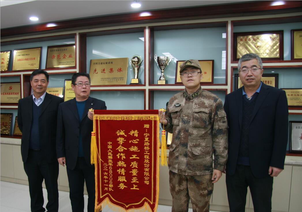 ——中國人民解放軍68006部隊為寧夏路橋集團贈送感謝錦旗