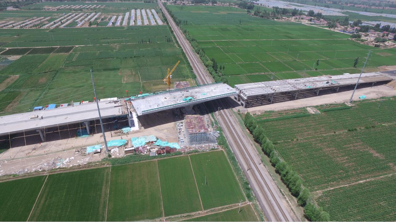 6月22日12時25分,由寧夏路橋建設集團承建的我區(qū)第二座轉(zhuǎn)體立交橋——中衛(wèi)市鎮(zhèn)照至濱河跨鐵路大橋成功轉(zhuǎn)體合龍。該橋經(jīng)過85分鐘、平轉(zhuǎn)80.58度后,跨鐵路與另一端橋體合龍連通,成功轉(zhuǎn)體。