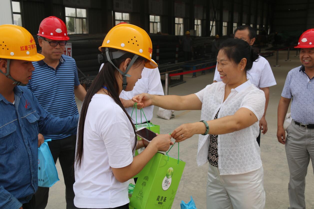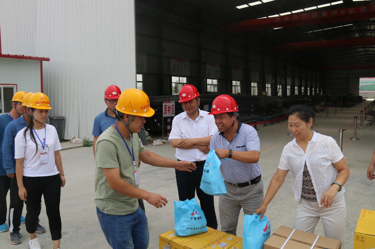 劉鵬云副廳長(zhǎng)特別叮囑項(xiàng)目管理單位要時(shí)刻關(guān)注安全生產(chǎn)工作和工程建設(shè)者的身體健康,做好防暑降溫工作,多創(chuàng)造良好的工作生活環(huán)境,保證高空、高溫作業(yè)人員的安全和健康。紅崖子黃河橋項(xiàng)目公司董事長(zhǎng)抗美倉(cāng),廳組織人事與老干部處劉金龍,寧夏交通工會(huì)負(fù)責(zé)人陳紅,寧夏路橋建設(shè)集團(tuán)黨委副書記、紀(jì)委書記、監(jiān)事會(huì)主席鮑學(xué)員,監(jiān)事、工會(huì)工主席蔡許川,副總經(jīng)理工偉等陪同慰問(wèn)。