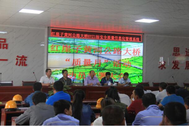 2017年9月12日上午,為加強(qiáng)公路水運(yùn)工程建設(shè)領(lǐng)域的質(zhì)量控制,提高施工人員的質(zhì)量意識(shí),紅崖子項(xiàng)目部積極響應(yīng)項(xiàng)目公司《交通運(yùn)輸部辦公廳關(guān)于開(kāi)展2017年公路水運(yùn)工程建設(shè)領(lǐng)域“質(zhì)量月”活動(dòng)的通知》(交辦安監(jiān)函[2017]1294號(hào))的號(hào)召,在農(nóng)民工培訓(xùn)學(xué)校召開(kāi)“質(zhì)量月動(dòng)員大會(huì)”。紅崖子黃河公路大橋項(xiàng)目公司總工程師以及各參建單位紅崖子黃河公路大橋第HYZ1標(biāo)、紅崖子黃河公路大橋第HYZ2標(biāo)、中心實(shí)驗(yàn)室和總監(jiān)辦還有各個(gè)作業(yè)隊(duì)負(fù)責(zé)人及帶班組長(zhǎng)參加了大會(huì)。