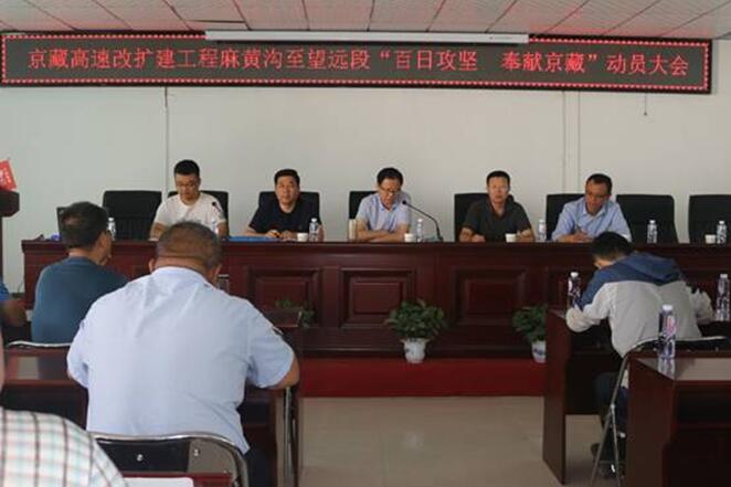 6月5日,京藏高速改擴建工程麻黃溝至望遠段“百日攻堅 奉獻京藏”動員大會在寧夏路橋工程股份有限公承建的京藏JZ12標順利召開,寧夏公路建設管理局副局長馬洪林、建設三處處長任曉巍等建設局領導,北段、過境段各監(jiān)理辦、中心試驗室以及各標段項目經理、總工程師等人員參加會議。