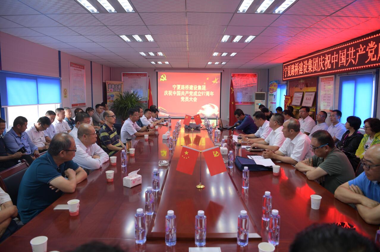 7月1日,寧夏路橋建設(shè)集團慶祝中國共產(chǎn)黨成立97周年黨員大會在銀百Ⅰ標(biāo)項目經(jīng)理部順利召開。集團高層領(lǐng)導(dǎo)、各成員企業(yè)、銀百Ⅰ標(biāo)項目經(jīng)理部等80余名黨員同志參加了大會。
