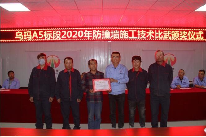 為積極響應(yīng)寧夏交投工程建設(shè)管理有限公司“合心、合力、合拍,大干一百八十天”勞動競賽活動的號召,在項目掀起比武練兵熱潮,5月17日至18日,烏瑪A5標(biāo)段項目經(jīng)理部舉行了防撞墻施工技術(shù)比武大賽。