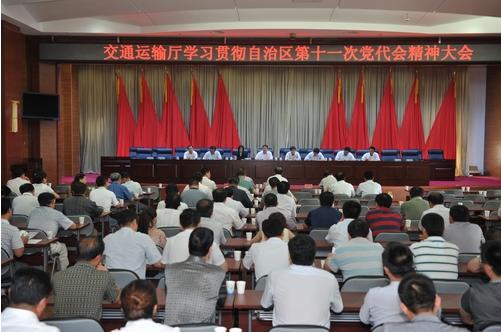 交通運(yùn)輸廳廳長(zhǎng)周舒?zhèn)鬟_(dá)了自治區(qū)第十一次黨代會(huì)精神,廳黨委書(shū)記許學(xué)民就學(xué)習(xí)貫徹黨代會(huì)精神提出具體要求。交通運(yùn)輸廳副廳長(zhǎng)勾紅玉主持大會(huì),廳領(lǐng)導(dǎo)楊有明、田貴強(qiáng)、張凌云、盧清華、王喜武參加大會(huì)。