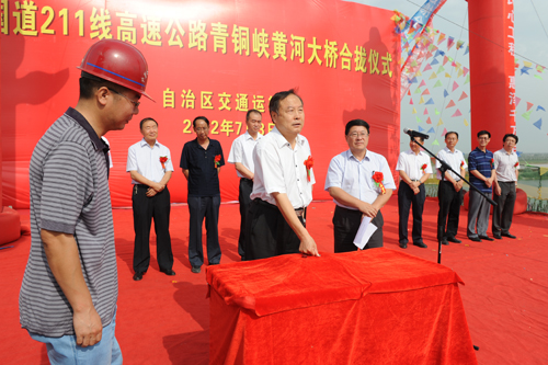 7月3日,國道211線高速公路青銅峽黃河公路大橋勝利合龍。自治區(qū)副主席趙小平啟動按鈕并宣布大橋合龍。寧夏交通運(yùn)輸廳廳長周舒主持合龍儀式,寧夏交通運(yùn)輸廳黨委書記許學(xué)民介紹了工程概況。吳忠市副市長李學(xué)文、寧夏公路建設(shè)管理局黨委書記武寧生、青銅峽市市長冀曉翀參加了大橋合龍儀式。