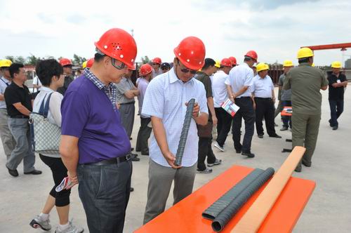 與會人員現(xiàn)場聽取施工標(biāo)準(zhǔn)化工作介紹
