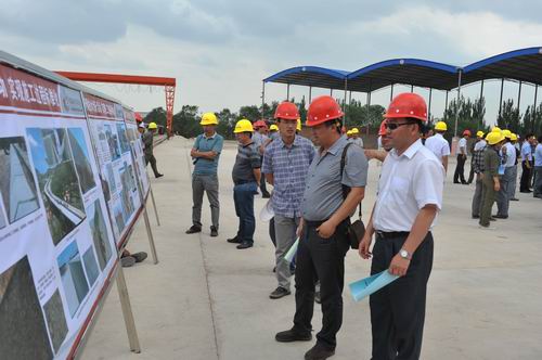 廳、局領(lǐng)導(dǎo)在中寧黃河大橋工地現(xiàn)場觀摩施工標(biāo)準(zhǔn)