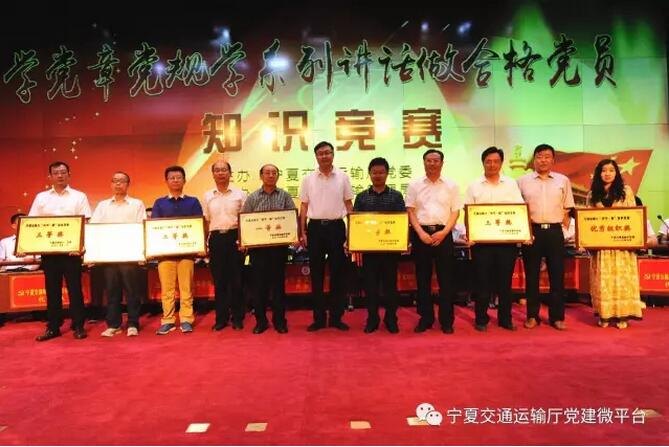 本次知識(shí)競(jìng)賽由廳黨委主辦、寧夏道路運(yùn)輸管理局承辦,來(lái)自廳屬各單位黨委和聯(lián)系企業(yè)黨委的9支代表隊(duì)參加了競(jìng)賽。競(jìng)賽緊張激烈,嚴(yán)肅活潑,氣氛熱烈,精彩紛呈。經(jīng)過(guò)激烈角逐,寧夏道路運(yùn)輸管理局代表隊(duì)獲一等獎(jiǎng),交通運(yùn)輸廳機(jī)關(guān)黨委、寧夏公路建設(shè)管理局代表隊(duì)獲二等獎(jiǎng),寧夏天豹汽車運(yùn)輸有限責(zé)任公司、寧夏公路管理局、寧夏路橋工程股份有限公司代表隊(duì)獲三等獎(jiǎng),寧夏道路運(yùn)輸管理局獲優(yōu)秀組織獎(jiǎng)。