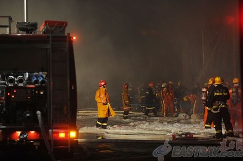 現(xiàn)場約有80多輛消防車出動,所有浦東的消防支隊均出動參與滅火,