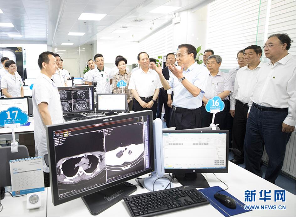 在銀川市第一人民醫(yī)院,李克強(qiáng)聽取了寧夏開展“互聯(lián)網(wǎng)+醫(yī)療健康”工作匯報,銀川智慧互聯(lián)網(wǎng)醫(yī)院覆蓋了全區(qū)所有社區(qū)鄉(xiāng)鎮(zhèn),實現(xiàn)了遠(yuǎn)程診斷。李克強(qiáng)與聯(lián)合診療患者的社區(qū)醫(yī)生和北京專家在線交流,勉勵他們當(dāng)好群眾健康守護(hù)者。李克強(qiáng)說,運用“互聯(lián)網(wǎng)+”促進(jìn)重點民生領(lǐng)域改善潛力巨大。要以習(xí)近平新時代中國特色社會主義思想為指導(dǎo),堅持以人民為中心的發(fā)展思想,按照黨中央、國務(wù)院部署,深入推動“互聯(lián)網(wǎng)+”行動,讓那些目前難以直接配置更多優(yōu)質(zhì)資源的基層和貧困地區(qū)的群眾,也能更方便獲得好的公共服務(wù),這有利于促進(jìn)公平。他希望寧夏在創(chuàng)建“互聯(lián)網(wǎng)+醫(yī)療健康”示范區(qū)上走在前列,惠及各族群眾及周邊地區(qū),國家會積極支持。